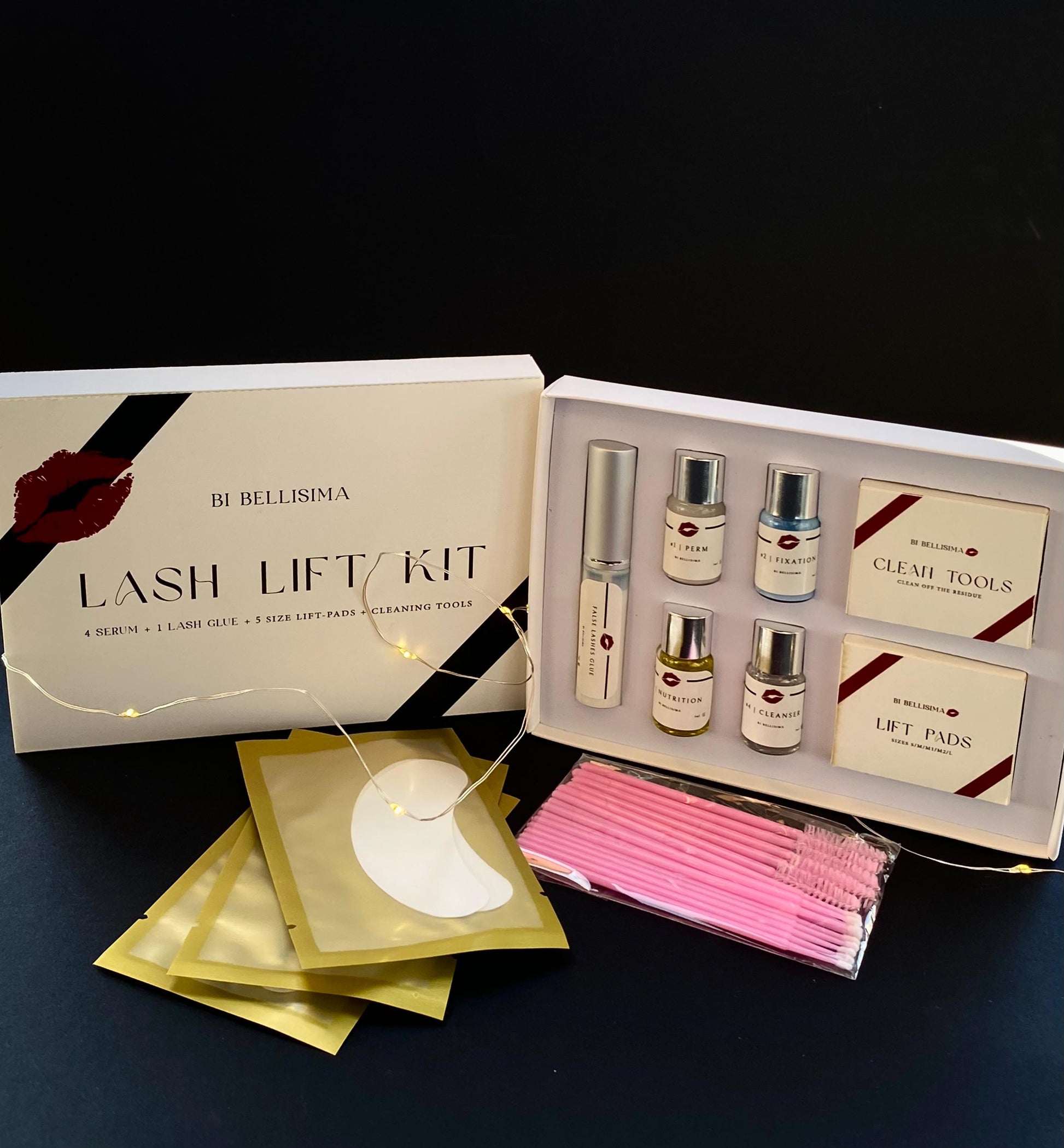 Comes with: perm lotion, fixing lotion, cleanser lotion, eyelash after care, perm glue and pads, lash lifter and brushes.
